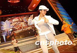 國際級歌手李玟應邀出席「2002/2003年度香港賽馬會冠軍人馬獎頒獎典禮」,20日與舞蹈演員彩排節(jié)目。作者: 洪少葵