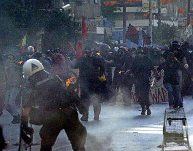 據(jù)報(bào)道,當(dāng)天下午,大約25000名反資本主義的和平人士在薩洛尼卡市舉行游行示威活動(dòng),包括200多名自稱反政府主義者。