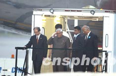 印度總理瓦杰帕伊六月二十二日晚乘專(zhuān)機(jī)抵達(dá)北京首都國(guó)際機(jī)場(chǎng),開(kāi)始他的訪華行程。中新社記者:毛建軍