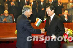 會(huì)談結(jié)束后,溫家寶和瓦杰帕伊出席了《中印關(guān)于簡(jiǎn)化簽證手續(xù)的諒解備忘錄》等九個(gè)文件的簽字儀式。