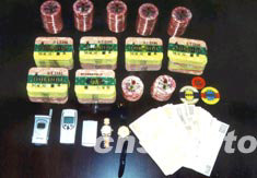 四月三十日凌晨五時(shí),廣東韶關(guān)市警方、廣州鐵路警方民警和湖南郴州市警方民警會(huì)合,在廣州花都區(qū)將在火車(chē)上逃跑的疑犯唐少華抓獲,并從其行李中當(dāng)場(chǎng)查獲籌碼等價(jià)值一百三十一萬(wàn)元的財(cái)物。