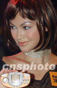 諾基亞六月二十五日晚在香港舉行產(chǎn)品發(fā)布會(huì),推出新款流動(dòng)電話3300。圖為香港名模Rosemary展示新款手機(jī)3300。 中新社記者 錢興強(qiáng)