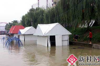 由于上游接連普降大雨,漓江水位迅速上漲,至6月27日9時(shí)30分,達(dá)到147.09米,比去年最高洪峰超出0.17米,超過(guò)30年一遇特大洪水。為了確保游覽漓江游客的生命安全,桂林市海事局發(fā)出封航令,漓江全線封航。