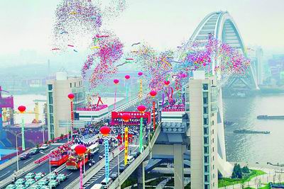 中共中央政治局委員、上海市委書記陳良宇出席大橋建成通車儀式,并宣布“上海盧浦大橋通車!”