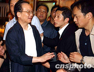 圖:國務(wù)院總理溫家寶熱情問候記者