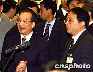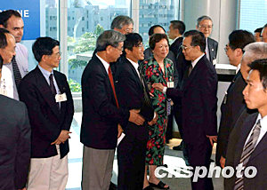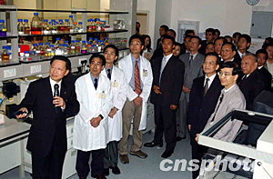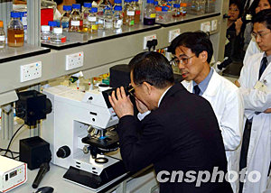 六月三十日,國(guó)務(wù)院總理溫家寶參觀香港大學(xué)基因中心,并聆聽(tīng)教授介紹,如何首先找到SARS冠狀病毒。中新社記者 潘索菲 攝