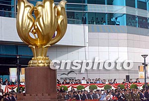 慶祝香港回歸祖國六周年的升旗禮,7月1日早上在香港灣仔金紫荊廣場舉行,整個(gè)升旗儀式簡短而莊重。中新社記者 錢興強(qiáng) 攝