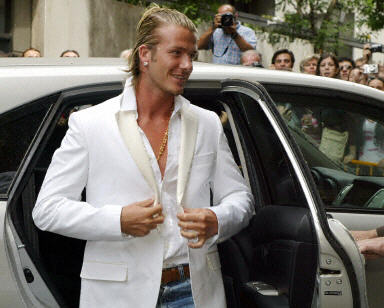 貝克漢姆當(dāng)天乘私人飛機(jī)從英國倫敦飛抵馬德里軍用機(jī)場,在妻子和大兒子的陪同下,在馬德里一家醫(yī)院進(jìn)行了體檢。體檢后,皇家馬德里隊(duì)醫(yī)生說,貝克漢姆已經(jīng)順利通過了包括心臟功能、體力、腳、腿等各項(xiàng)檢查,他“壯得像頭!。
