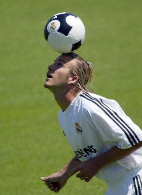 組圖:貝克漢姆身披皇馬戰(zhàn)衣展示球技