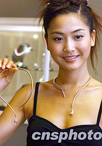 中新網(wǎng)7月4日電 “香港佳士得2003年瑰麗珠寶及翡翠首飾春季拍賣會”昨天舉行,邀得周汶锜(Kathy)擔任模特兒。