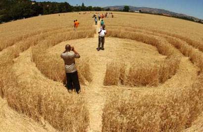 研究人員并不是到現(xiàn)場的唯一人群,數(shù)百名當?shù)孛癖娨簿奂浆F(xiàn)場,一些人站在怪圈里忙碌地用計算器計算,另一些人則對眼前的一切感到非常驚奇,還有一些人像對待黃金一樣地小心翼翼的收集怪圈里的小麥。