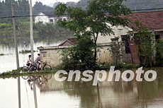 安徽淮河分蓄洪以來,滁州農(nóng)村部分房屋被洪水圍困,給當(dāng)?shù)厝罕姷某鲂袔砗芏嗖槐。中新社記?盛佳鵬