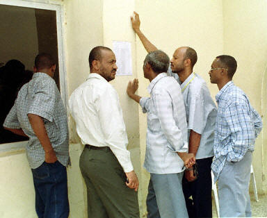 蘇丹航空公司的一架波音737客機8日凌晨4時(當(dāng)?shù)貢r間)在蘇丹港機場附近墜毀,除一名兩歲兒童幸存外,機上其余105名乘客和11名機組人員喪生。圖為遇難航班旅客的親屬在蘇丹航空公司查看遇難者名單。