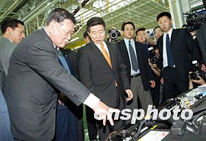 中新網(wǎng)7月10日電 在中國(guó)進(jìn)行訪問(wèn)的韓國(guó)總統(tǒng)盧武鉉及夫人,昨天(9日)下午在北京市代市長(zhǎng)王岐山的陪同下,興致勃勃地參觀北京現(xiàn)代汽車公司。據(jù)北京日?qǐng)?bào)報(bào)道,盧武鉉講話說(shuō),來(lái)到北京現(xiàn)代汽車公司感慨萬(wàn)千;韓國(guó)現(xiàn)代集團(tuán)與北京合作,是韓中雙方的幸運(yùn)。
