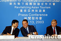 “新形勢下國際旅游合作大會──重振亞洲旅游業(yè)”會議將于七月十四至十五日在香港舉行。來自世界各地的部長、旅游業(yè)界、學術界及國際機構代表將出席該會。左起為博鰲亞洲論壇秘書長辦公室主任姚申洪、世界旅游組織秘書長弗朗加利及香港特區(qū)政府副旅游事務專員柏志高聯合主持十三日在此間舉行的新聞發(fā)布會。中新社記者:潘索菲