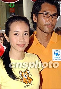 香港歌星莫文蔚和藝員陳啟泰,七月十三日出席在香港舉行的“寶寶健康快樂之星選舉”愛護(hù)動(dòng)物活動(dòng)。中新社記者:錢興強(qiáng)