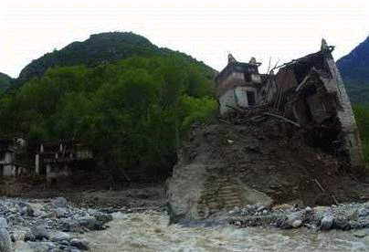 中新網(wǎng)7月14日電 趟過(guò)泥濘,走過(guò)獨(dú)木橋,眼前是一個(gè)巨大的泥石流沖擊扇,一條混濁的急流從中間穿過(guò),發(fā)出沉悶的響聲?諝庵幸老】梢孕岢鰳淠镜挠南,沖擊扇上到處是已經(jīng)燃完的香和零落的紙錢,幾條新掛起的經(jīng)幡在風(fēng)中飄動(dòng)。要不是在這數(shù)十萬(wàn)立方米的堆積層上偶然發(fā)現(xiàn)一輛露出一半且已扭曲的自行車和一個(gè)快被完全淹沒的電冰箱,誰(shuí)能相信這厚厚的沙石和泥土堆積的地方,兩天前還是一個(gè)享譽(yù)中外的小村莊———“丹巴美人谷”!