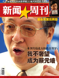 中新網(wǎng)7月16日電 北大的事就是中國的事,所以北大的5月到7月,不僅僅是在燕園,而是在全國引起了震蕩。下周一(7月21日)出版的中國《新聞周刊》就此事到北大“探營”!拔也桓疑萃蔀榈诙䝼蔡元培,”校長許智宏在接受中國《新聞周刊》采訪時說。