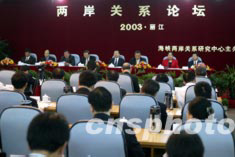 2003年海峽兩岸關(guān)系論壇十七日在云南麗江開幕,來自海峽兩岸、香港、澳門以及海外的百余位專家學(xué)者出席會(huì)議,這是“非典”疫情雙解除后,海峽兩岸間首次舉行的大規(guī)模交流活動(dòng)。中新社記者:毛建軍