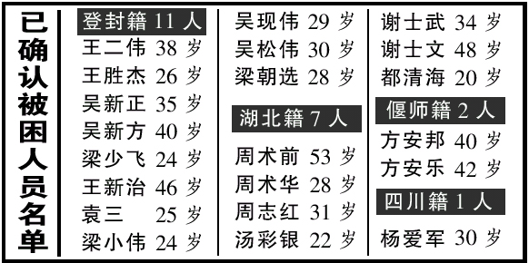 另據了解,遇險的21名礦工中河南籍13人,湖北籍7人,四川籍1人。發(fā)生事故的東風煤礦屬一家四證(采礦許可證、營業(yè)執(zhí)照、法人代表資格證、生產許可證)齊全的鄉(xiāng)鎮(zhèn)煤礦,已開采了10多年。事故發(fā)后該礦的法人代表、礦長及其他管理人員逃離現場,給搶險工作增加難度,目前公安部門正在全力進行追捕。