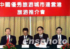 江蘇省連云港市十七日在香港舉行旅游推介會(huì),尋求與香港及海外旅游界的合作。圖為連云港市旅游局局長李道瑩(右二)在推介會(huì)上。作者:謝育元