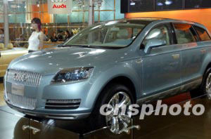 七月中在長(zhǎng)春舉行的汽車博覽會(huì)上,價(jià)值二點(diǎn)七億元人民幣的奧迪概念車首次亮相。中新社記者:趙振清