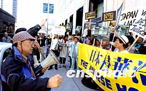 七月十八日,美國舊金山日本侵華浩劫紀(jì)念館舉行“為正義而呼喚!為史實而抗議!”的示威游行,百余名華人前往日本駐舊金山領(lǐng)事館遞交抗議書,要求日本承認(rèn)“對華侵略”,真心悔改,“向中國人民謝罪道歉”,對受害者“作出公平的賠償”。作者:陳鋼