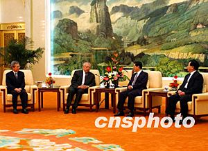 中國(guó)國(guó)家主席胡錦濤和副主席曾慶紅,七月十九日在北京人民大會(huì)堂會(huì)見香港特首董建華和行政長(zhǎng)官辦公室主任林煥光。中新社記者:賈國(guó)榮
