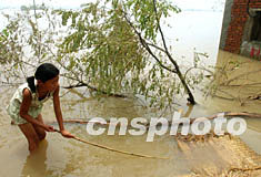 組圖:淮河洪水中的農(nóng)家女孩早當家