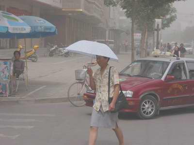 中新網(wǎng)7月21日電 據(jù)中廣網(wǎng)報道,今天清晨開始,寧夏回族自治區(qū)由中部向北部出現(xiàn)了明顯的揚沙浮塵天氣,早晨9時最嚴重時,首府銀川天色昏暗,能見度低,空氣中一味嗆人的土腥味,街頭行人不少婦女撐傘擋塵,一些人還不顧炎熱戴上了口罩。