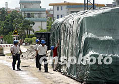 今年第八號(hào)強(qiáng)熱帶風(fēng)暴“天鵝”預(yù)計(jì)二十一日傍晚在海南到湛江一線沿海登陸,廣東湛江港工人正在加固貨堆,做好防風(fēng)準(zhǔn)備。作者:李小軍