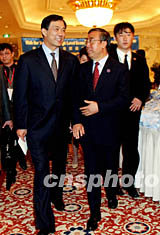 中國商務部部長呂福源、遼寧省省長薄熙來二十二日出席在大連舉行的“亞歐高層經(jīng)濟論壇”,為即將舉行的亞歐經(jīng)濟部長會議拉開序幕。中新社記者:鄭萍萍