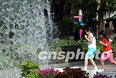 圖:香港小童噴水池邊玩樂消暑