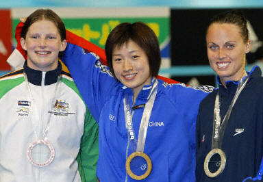 北京時間二十三日凌晨,羅雪娟的決戰(zhàn)時刻終于來了。準備活動中,這位十九歲的姑娘顯得有點緊張,但還是一如往常向觀眾綻放了她那標志性的發(fā)自內(nèi)心的單純笑容,鳴槍后,八名參加決賽的選手一起出發(fā),羅雪娟在第三道,旁邊的“第一賽道”第四泳道上,就是昨天風頭很勁的澳大利亞選手瓊斯。
