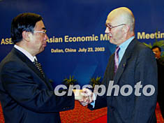 當(dāng)前,世界經(jīng)濟正處在調(diào)整和恢復(fù)階段。然而,伊拉克戰(zhàn)爭、SARS疫情、美元匯率的波動以及最近接連發(fā)生的恐怖事件,給全球經(jīng)濟的復(fù)蘇帶來了諸多不確定因素。如何應(yīng)對這些不利影響,重振世界經(jīng)濟,是世界各國所共同關(guān)心的問題,也是本次經(jīng)濟部長會議面臨的重要課題。我相信,來自亞洲和歐洲的各位部長們,將充分利用此次會議的契機,對當(dāng)今世界經(jīng)濟發(fā)展存在的重大問題深入交換意見,增進共識,并積極尋求合作途徑,共同應(yīng)對挑戰(zhàn),為世界經(jīng)濟的復(fù)蘇做出積極的貢獻(xiàn)。