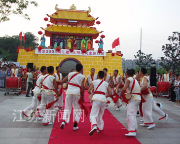 中新江蘇網7月24日電(記者丁東升 實習記者胡祥麟 通訊員孫愛華)昨晚,數千市民扶老攜幼歡聚南京獅子山公園廣場,觀賞在此舉行的“閱江樓·大明雄風”主題燈展開幕式。當晚7點,在獅子山的東廣場伴隨著腰鼓隊的一段精彩演出,為期四個月的燈展正式拉開帷幕。盡管天氣悶熱,但仍擋不住絡繹不絕的群眾的熱情,整個東廣場被擠了個里三層外三層。