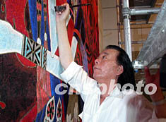 圖:丁紹光修復(fù)上海大劇院名畫《藝術(shù)女神》