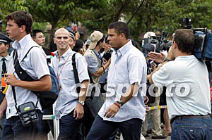 皇馬包機(jī)一抵昆明巫家壩國際機(jī)場,巨星們剛走出艙門,就有十位禮儀小姐為皇馬巨星獻(xiàn)花。這十位禮儀小姐都是世博園老總李鱗精心挑選出來的!拔覀兌际腔蜀R的球迷!”禮儀小姐們?yōu)榻o皇馬巨星獻(xiàn)花而感到驕傲