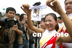 而在皇馬抵達(dá)昆明之前,就有兩位紅塔女工為了歡迎皇馬巨星,用了整整一個禮拜親手縫制二十多件印有貝克漢姆、齊達(dá)內(nèi)、勞爾等舉行頭像的小T恤。今天一早,這兩位女工又隨著大部隊(duì)從玉溪趕往昆明迎接皇馬!澳軌蛴H眼看到皇馬的球員就心滿意足了!眱晌慌さ囊蟮共皇呛芨。
