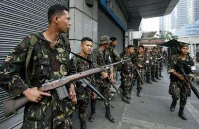 圖:忠于阿羅約總統(tǒng)的菲律賓士兵集結(jié)待命