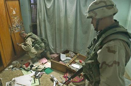據(jù)信,美軍是在搜查被趕下臺(tái)的伊拉克前領(lǐng)導(dǎo)人薩達(dá)姆·侯賽因的一個(gè)親戚。美軍搗毀房屋大門和窗戶,破門而入進(jìn)行搜查,但是沒有逮捕任何人。