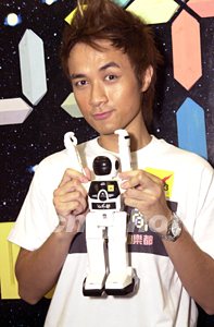 歌影紅星古巨基手持航天員模型,展露童心未泯的笑容。作者:鄧慶樂(lè)