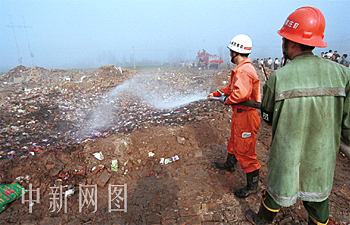 圖:辛集煙花廠爆炸消防人員趕赴現(xiàn)場滅火