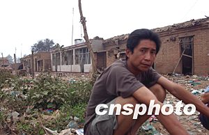 爆竹廠職工宿舍前的一位幸存者。中新社記者:武仲林