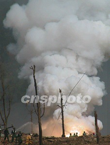 七月三十一日上午七時四十分,福建閩侯縣荊溪鎮(zhèn)一私營煙花爆竹廠發(fā)生爆炸,造成重大傷亡。爆炸面積約一千五百平方米,現(xiàn)場一片廢墟。武警、消防、公安、當(dāng)?shù)伛v軍及醫(yī)護(hù)人員,當(dāng)?shù)攸h政官員在現(xiàn)場全力搜救。中新社記者:劉可耕