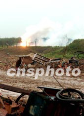 在現(xiàn)場采訪的過程中,記者在引爆現(xiàn)場還能看到零星的火焰。
