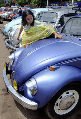 隨著大眾汽車墨西哥普韋布洛廠停止生產(chǎn)大眾原型“甲殼蟲”,這種汽車最終退出了歷史舞臺(tái)。圖為孟加拉大眾“甲殼蟲”汽車展。