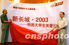八月三日,由中國扶貧基金會主辦的“新長城2003特困大學生關愛行動”在北京人民大會堂舉行啟動儀式,此次行動將有一萬余名特困大學生得到捐助。中新社記者:盛佳鵬