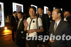 紀(jì)政等臺(tái)灣嘉賓出席北京奧運(yùn)會(huì)徽發(fā)布儀式。