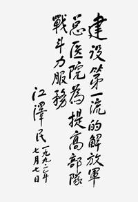 文章還講述了這樣一個(gè)小故事:1993年,解放軍總醫(yī)院建院40周年。醫(yī)院請(qǐng)江澤民同志為醫(yī)院題寫(xiě)院名:“解放軍總醫(yī)院”,江澤民同志在題詞時(shí),意味深長(zhǎng)地說(shuō):“我看,還要加上‘中國(guó)人民’四個(gè)字!